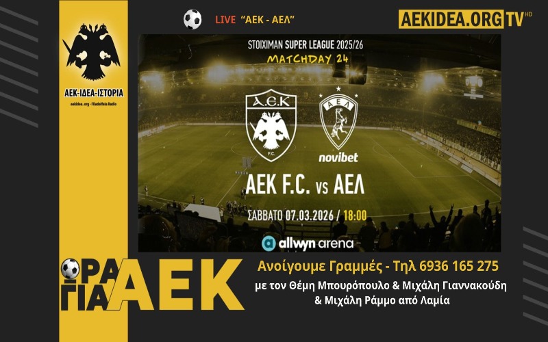 Συντονιστείτε τώρα στο filadelfeiaradio & web tv για ζωντανή κάλυψη, σχόλιο και παλμό από το παιχνίδι της ΑΕΚ!
