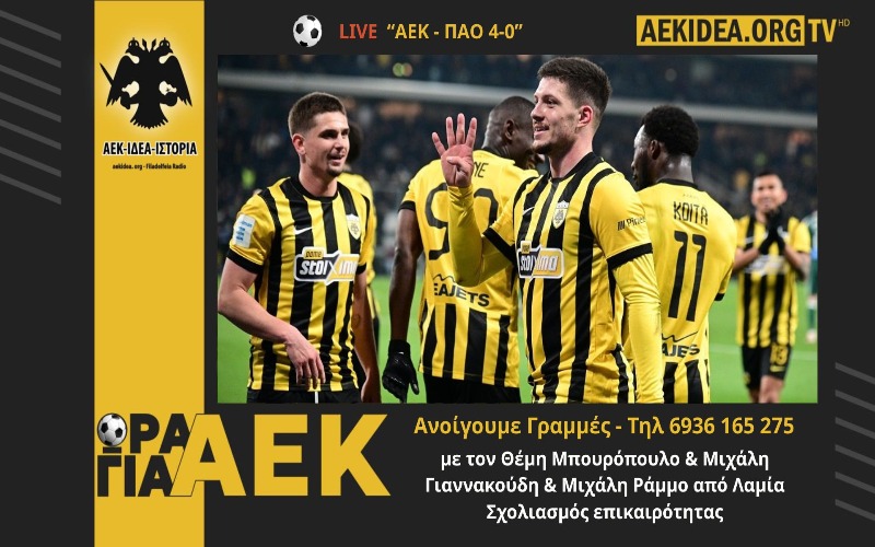 LIVE ΕΚΠΟΜΠΗ ΩΡΑ ΓΙΑ ΑΕΚ ΜΕΣΑ ΑΠΟ ΤΟ WEB TV AEKIDEA.ORG – FILADELFEIA RADIO
