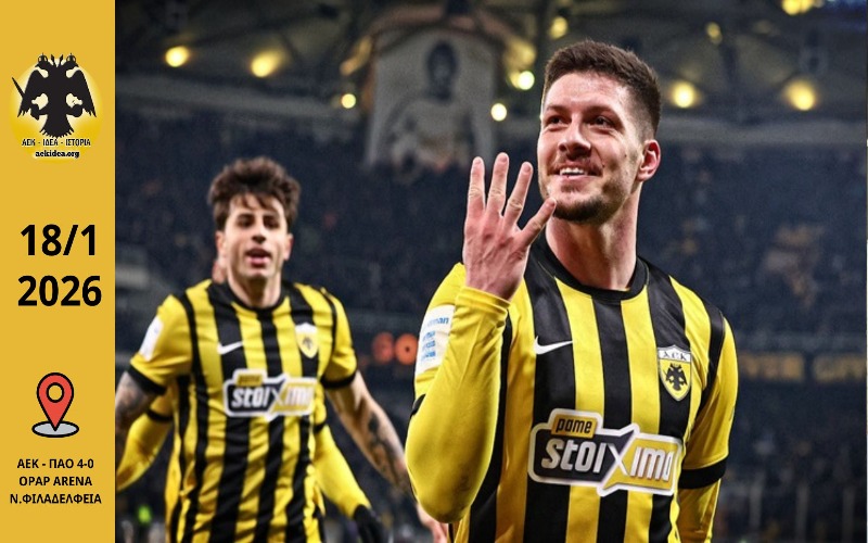 Η ΑΕΚ έγραψε ιστορία με μία εμφατική νίκη 4-0 επί του Παναθηναϊκού στην OPAP Arena, σε ένα βράδυ απόλυτης κυριαρχίας, πάθους και ποδοσφαιρικής υπεροχής. Πρωταγωνιστής ο Γιόβιτς, που πραγματοποίησε εμφάνιση υψηλού επιπέδου, οδηγώντας την «Ένωση» σε μία από τις πιο ηχηρές νίκες των τελευταίων ετών απέναντι στον αιώνιο αντίπαλο.