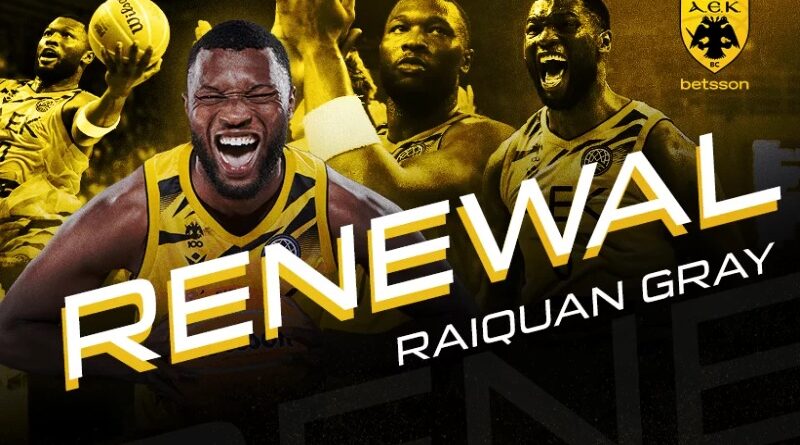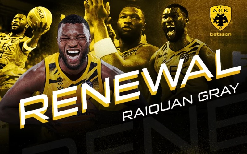 Η ΑΕΚ Betsson BC BC ανακοινώνει, ότι ο ΡαϊΚουάν Γκρέι (RaiQuan Gray, 26 χρ., 2μ.01) υπέγραψε σήμερα (01/08) νέο συμβόλαιο συνεργασίας με τη «Βασίλισσα» έως το τέλος της περιόδου 2025-2026.