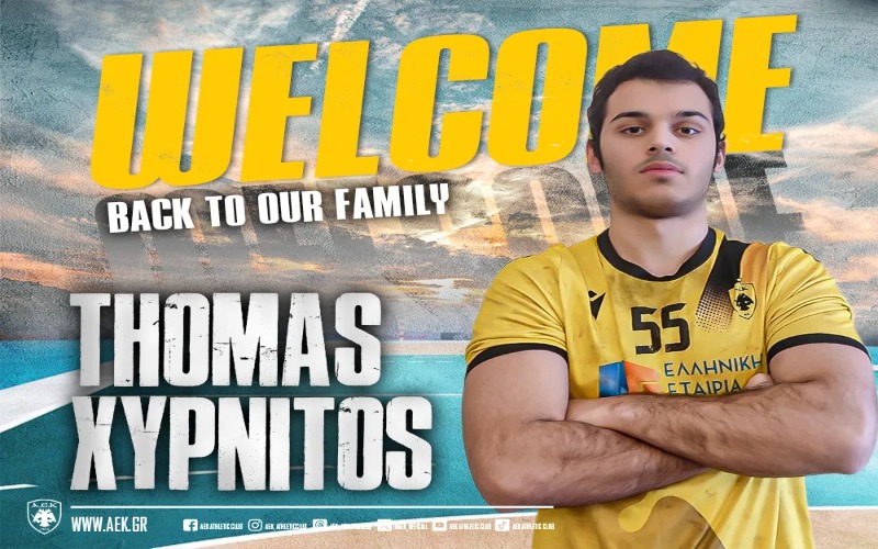Η ΑΕΚ βρίσκεται στην ευχάριστη θέση να ανακοινώσει την έναρξη της συνεργασίας της με τον Θωμά Ξυπνητό. Ο 19χρονος (23/12/2006) διεθνής, ύψους 1.83μ., αγωνίζεται ως δεξί ίντερ και δεξί εξτρέμ και εντάσσεται στο δυναμικό της ανδρικής ομάδας Χάντμπολ του Συλλόγου.