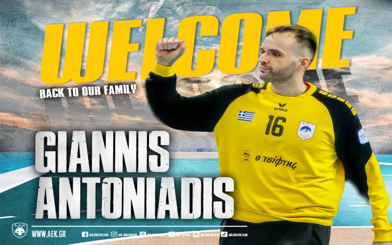 Η ΑΕΚ βρίσκεται στην ευχάριστη θέση να ανακοινώσει την έναρξη της συνεργασίας της με τον Γιάννη Αντωνιάδη. Ο 31χρονος (21/10/1994) τερματοφύλακας, ύψους 1.92μ., υπέγραψε το συμβόλαιό του και επιστρέφει στο δυναμικό της ανδρικής ομάδας Χάντμπολ του Συλλόγου ύστερα από 8 χρόνια.