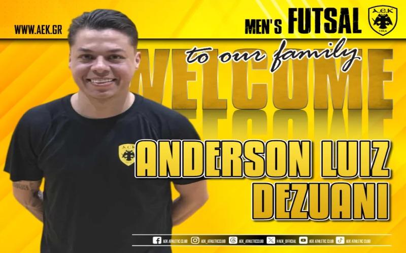 Η ΑΕΚ βρίσκεται στην ευχάριστη θέση να ανακοινώσει την έναρξη της συνεργασίας της με τον Άντερσον Λουίζ Ντεζουάνι Νενέ. Ο 32χρονος (03/12/1993) Βραζιλιάνος, αγωνίζεται στο δεξί φτερό και εντάσσεται στο δυναμικό της ανδρικής ομάδας Futsal.