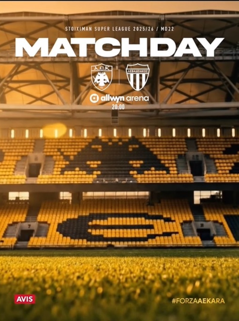 Σήμερα στις 20:00 η ΑΕΚ υποδέχεται τον Λεβαδειακός στη Νέα Φιλαδέλφεια!