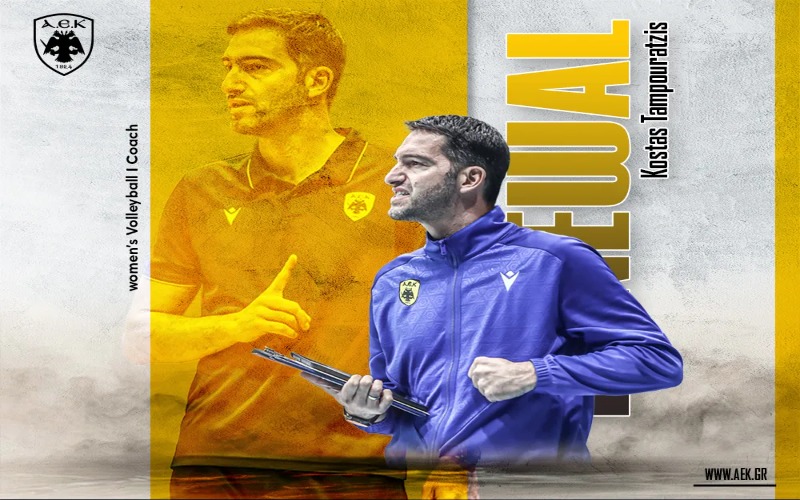 Η ΑΕΚ βρίσκεται στην ευχάριστη θέση να ανακοινώσει την ανανέωση της συνεργασίας της με τον Κωνσταντίνο Ταμπουρατζή, ο οποίος θα συνεχίσει στον πάγκο της γυναικείας ομάδας Βόλεϊ του Συλλόγου.