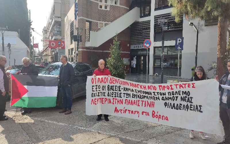 Παρέμβαση έξω από το Δημαρχείο Νέας Φιλαδέλφειας-Νέας Χαλκηδόνας πραγματοποίησε η Αντίσταση στα Βόρεια, ενάντια στο πόλεμο και την εμπλοκή της χώρας σε αυτόν, καθώς και ενάντια στις διώξεις σε εργαζόμενους στο δήμο Νέας Φιλαδέλφειας-Νέας Χαλκηδόνας.