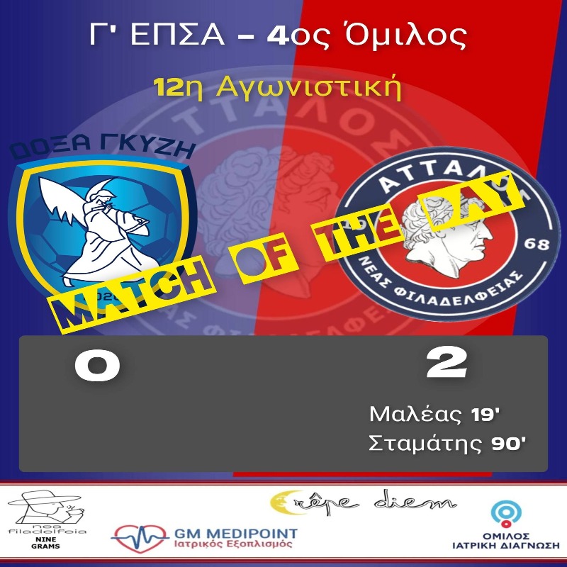 Με τον καλύτερο τρόπο ξεκίνησε το 2026 ο Άτταλος Νέας Φιλαδέλφειας, καθώς επικράτησε με 2-0 της Δόξας Γκύζη εκτός έδρας, σε ένα ντέρμπι που επιβεβαίωσε την αγωνιστική του ανωτερότητα και τον διατήρησε στην κορυφή της βαθμολογίας.