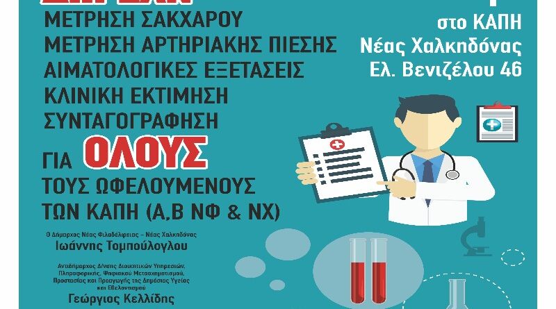 Read MoreΔήμος ΝΦ-ΝΧ: Δωρεάν ιατρικές εξετάσεις για τους ωφελούμενους των ΚΑΠΗ του Δήμου μας Η ενημέρωση Ο Δήμος Νέας Φιλαδέλφειας –