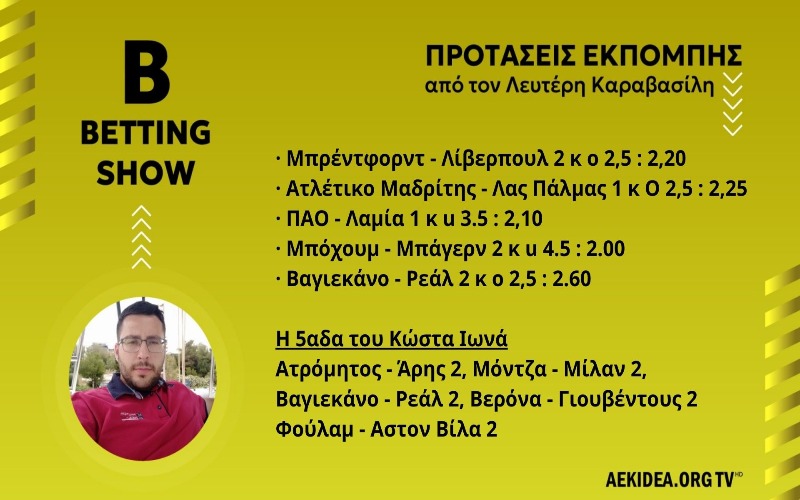 “Betting Show” #4 ΑΕΚ, Στοίχημα, Προτάσεις, Κουβέντα και όχι μόνο …