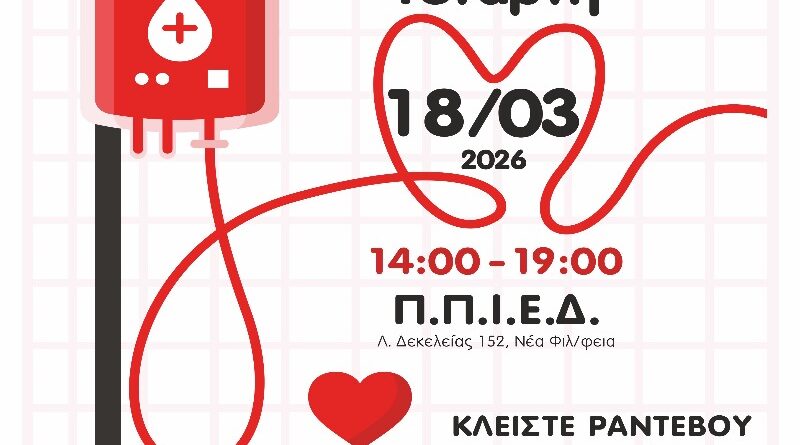 Read MoreΔήμος ΝΦ-ΝΧ: Ξεκινά η υποβολή αιτήσεων για την 28η Εθελοντική Αιμοδοσία Ο Δήμος Νέας Φιλαδέλφειας – Νέας Χαλκηδόνας, το Τμήμα Κοινωνικής Πολιτικής