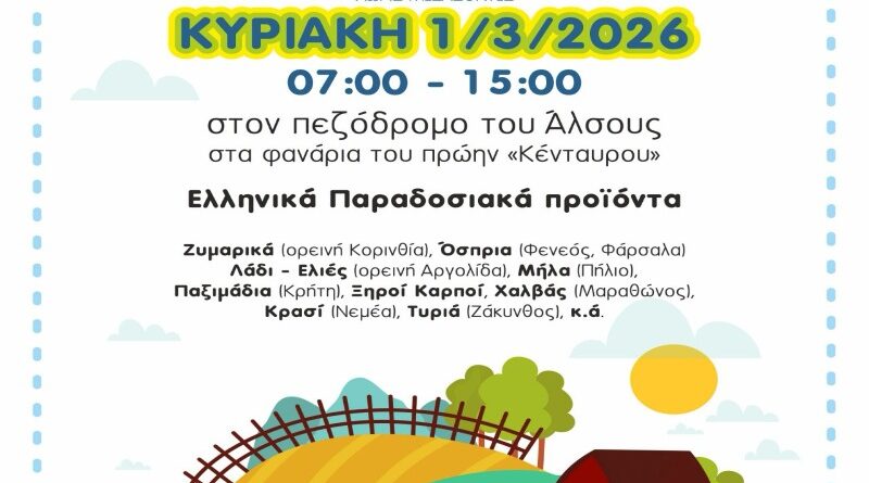 Read MoreΔήμος ΝΦ-ΝΧ: Διοργάνωση Φεστιβάλ Αγροτικών Προϊόντων από Έλληνες Παραγωγούς, χωρίς μεσάζοντες Η ενημέρωση Την Κυριακή 1 Μαρτίου από τις 07:00