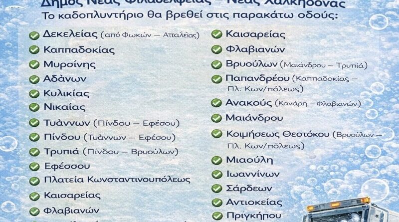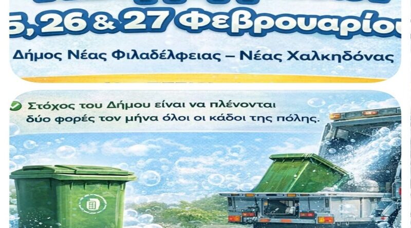Read MoreΔήμος ΝΦ-ΝΧ: Πρόγραμμα Πλυσίματος Κάδων 4, 5 & 6 Μαρτίου 2026 Η ενημέρωση Η Διεύθυνση Καθαριότητας του Δήμου Νέας Φιλαδέλφειας