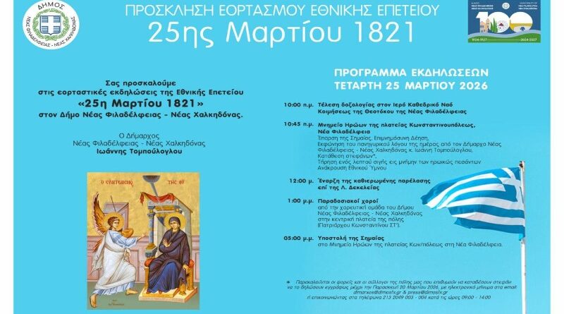 Read MoreΔήμος ΝΦ-ΝΧ: Εορτασμός της Εθνικής Επετείου της 25ης Μαρτίου 1821 Με τη δέουσα επισημότητα και λαμπρότητα θα τιμήσει και φέτος