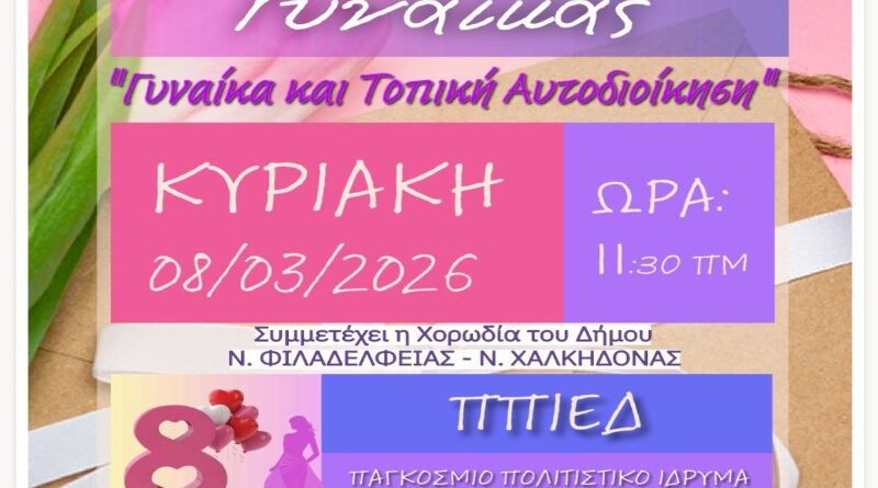 Read MoreΔήμος ΝΦ-ΝΧ: Παγκόσμια Ημέρα της Γυναίκας: Εκδήλωση με θέμα “Γυναίκα και Τοπική Αυτοδιοίκηση” Η ενημέρωση Ο Δήμος Νέας Φιλαδέλφειας – Νέας