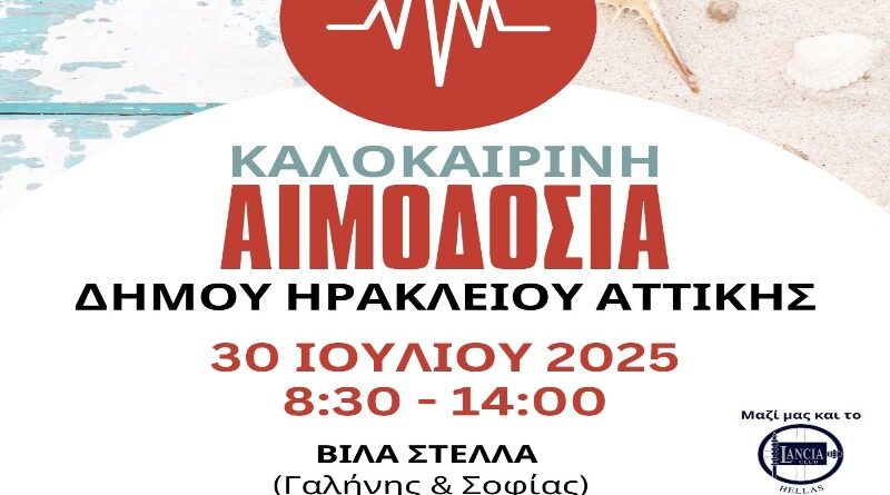 Read MoreΔήμος Ηρακλείου Αττικής: Καλοκαιρινή αιμοδοσία του Δήμου: Τετάρτη 30 Ιουλίου στη Βίλα Στέλλα Η ενημέρωση Νίκος Μπάμπαλος: «Αποδεικνύουμε έμπρακτα ότι