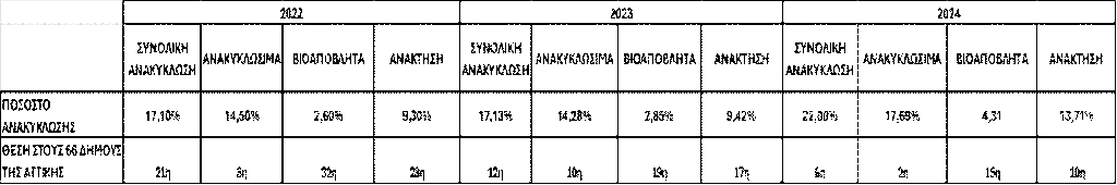 - Συνολική ανακύκλωση: από 21η το 2022 → 12η το 2023 → 6η το 2024