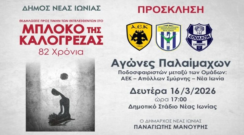 Δήμος Νέας Ιωνίας: Αγώνες παλαιμάχων για τα 82 Χρόνια από το Μπλόκο της Καλογρέζας
