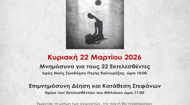 Μνημόσυνο για τους 22 Εκτελεσθέντες: