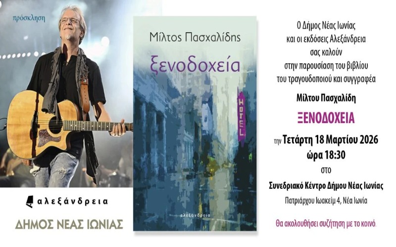 Δήμος Νέας Ιωνίας: Παρουσίαση του βιλίου “Ξενοδοχεία” του Μίλτου Πασχαλίδη
