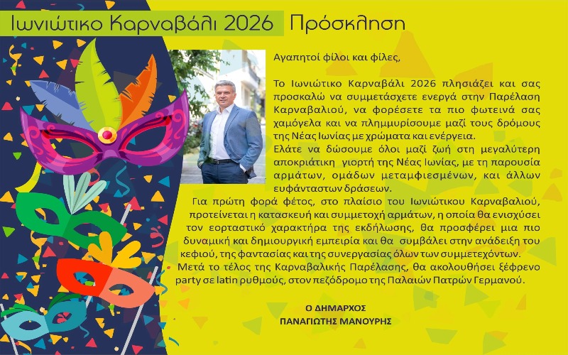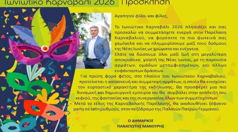 Δήμος Νέου Ηρακλείου: Ιωνιώτικο Καρναβάλι 2026