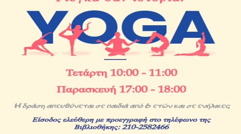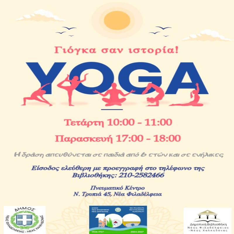 Η Δημοτική Βιβλιοθήκη του Δήμου Νέας Φιλαδέλφειας-Νέας Χαλκηδόνας, σε συνεργασία με τη δασκάλα γιόγκα κα. Άννα – Μαρία Λούτατ, διοργανώνει τη δράση «Γιόγκα σαν ιστορία!».