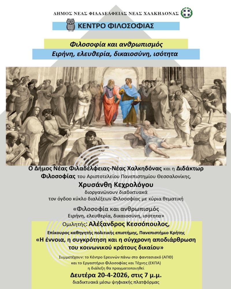 Δήμος ΝΦ-ΝΧ: Κέντρο Φιλοσοφίας, Διάλεξη με θέμα: «Η Έννοια, η Συγκρότηση και η Σύγχρονη Αποδιάθρωση του Κοινωνικού Κράτους Δικαίου» (20/04/2026)