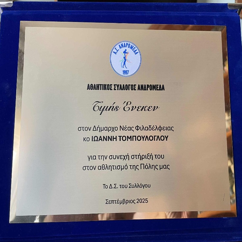 Δήμος ΝΦ-ΝΧ: Ο Αθλητικός Σύλλογος “Ανδρομέδα” βράβευσε τον Γιάννη Τομπούλογλου για τη συνεχή στήριξή του στον αθλητισμό της πόλης μας
