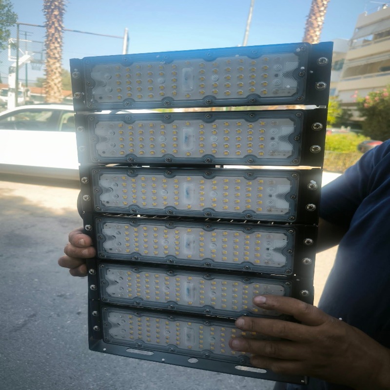 – Αντικατάσταση όλων των παλαιών φωτιστικών σωμάτων με σύγχρονους προβολείς LED (προμήθεια μέσω χορηγίας)