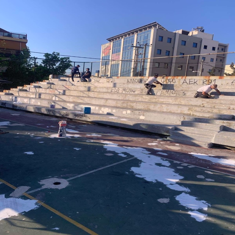 – Αποκατάσταση και βάψιμο των κερκίδων