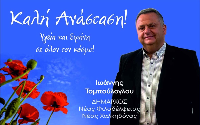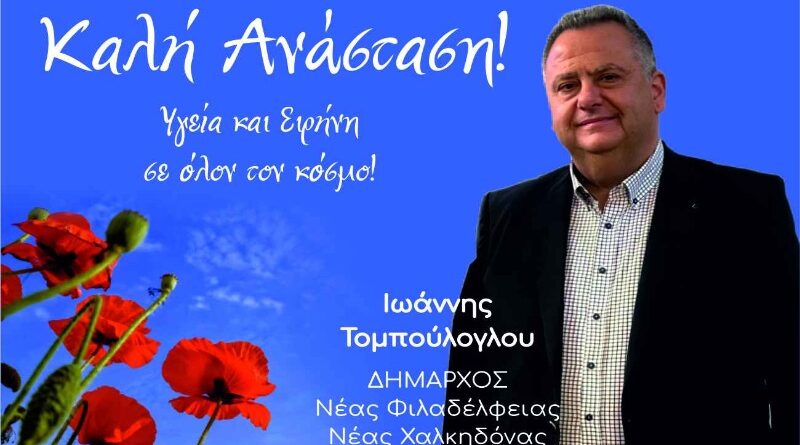 Ευχές Δημάρχου Νέας Φιλαδέλφειας – Νέας Χαλκηδόνας Γιάννη Τομπούλογλου για το Πάσχα – Υγεία και Ειρήνη σε όλο τον Κόσμο