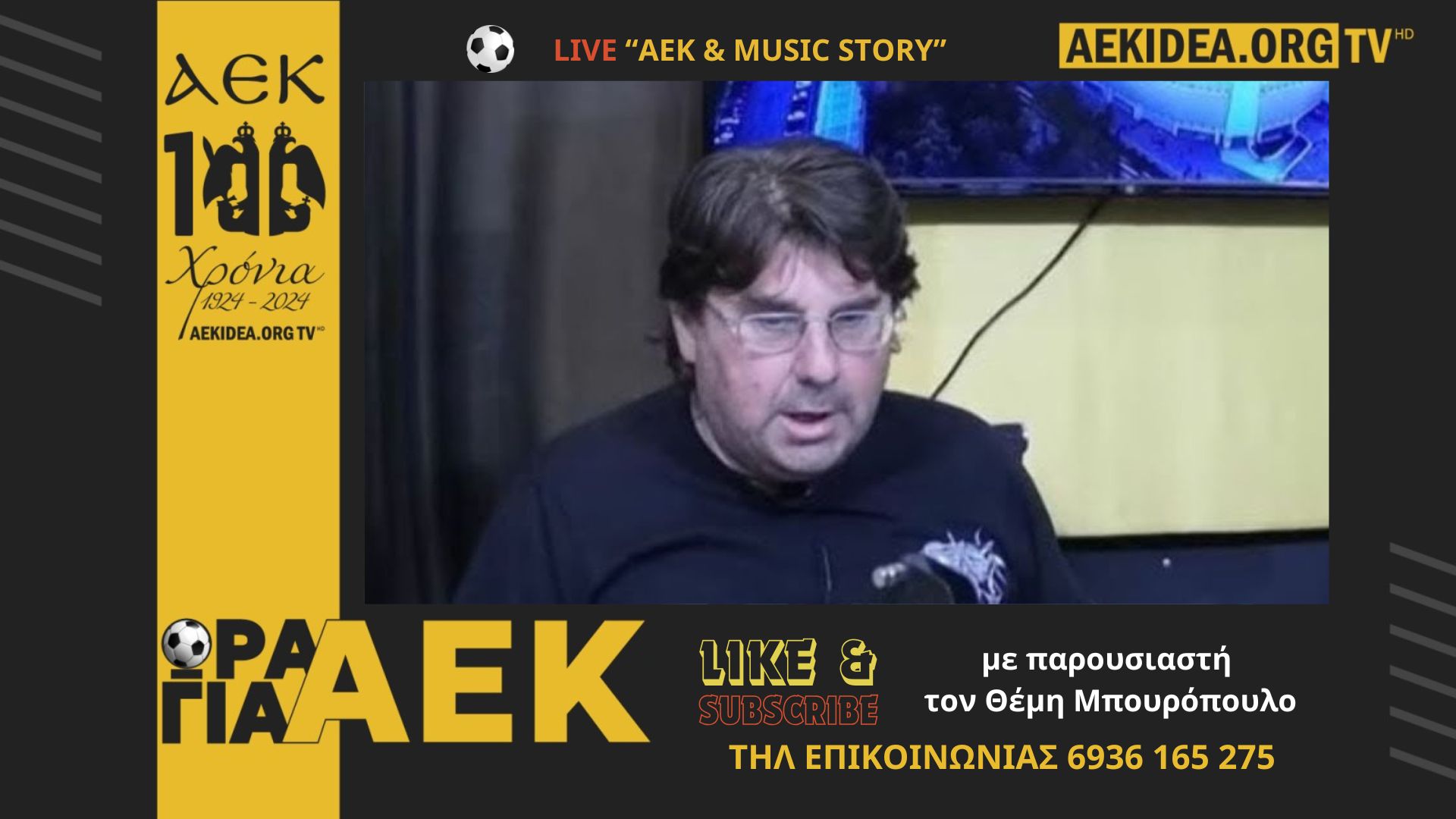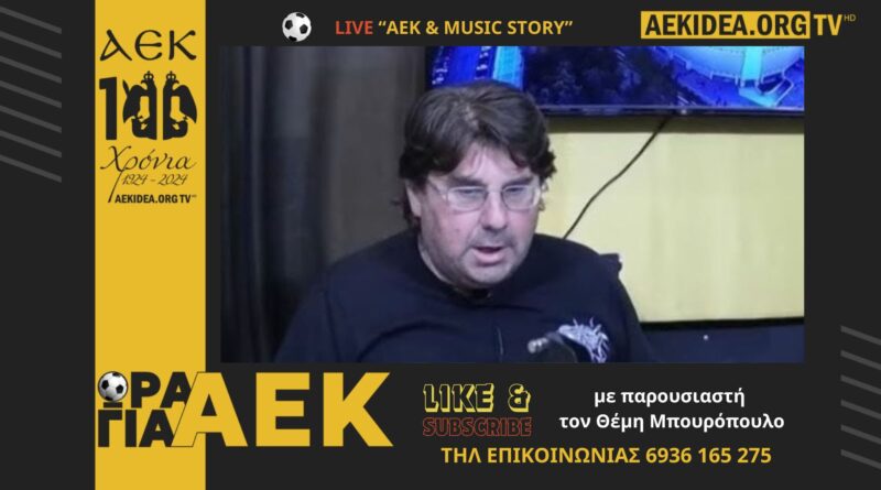 Ζωντανή Εκπομπή με Μουσική & Επικαιρότητα ΑΕΚ με τον Θέμη Μπουρόπουλο. Ανοίγουμε γραμμές τηλ επικοινωνίας 6936 165 275