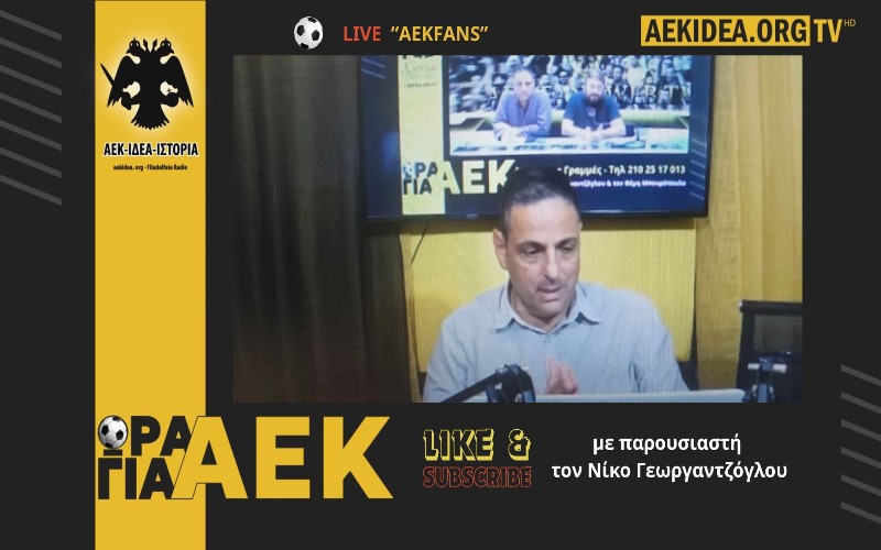 Ζωντανή εκπομπή του Συνδέσμου aekfans με παρουσιαστή τον Νίκο Γεωργαντζόγλου – Δίνουμε Βήμα στο Κόσμο της ΑΕΚ – Περιμένουμε τη συμμετοχή και τα μηνύματα σας