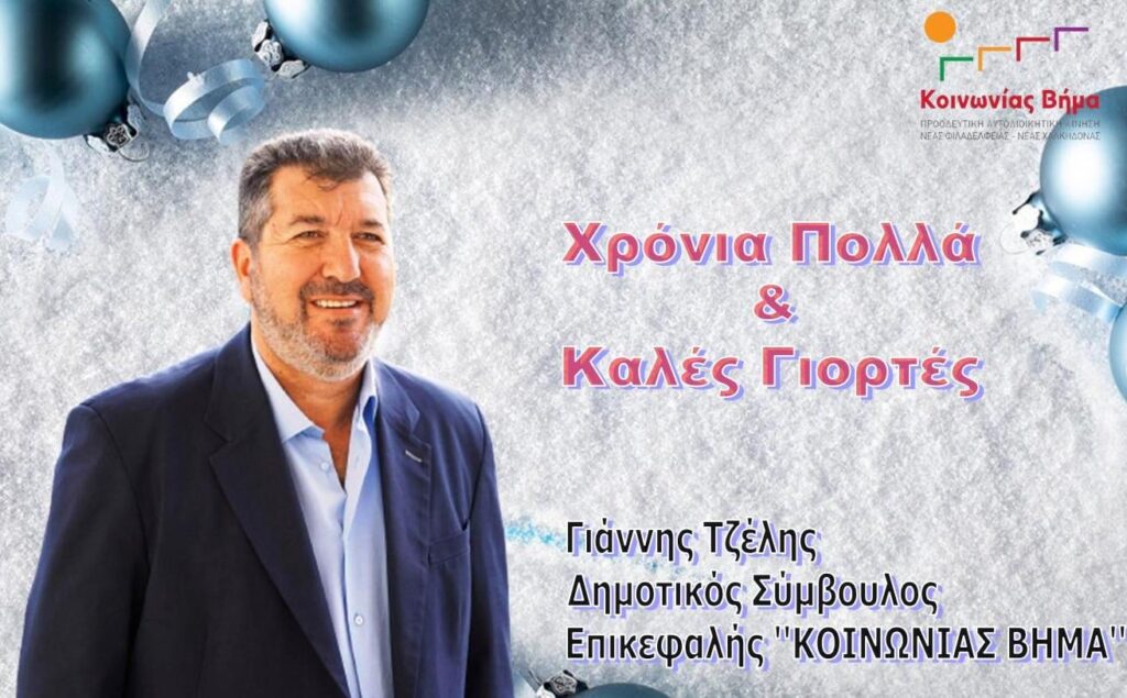 Η παράταξη «Κοινωνίας Βήμα» και ο επικεφαλής δημοτικός σύμβουλος Γιάννης Τζέλης εκφράζουν τις θερμότερες ευχές τους για Καλά Χριστούγεννα και ένα 2025 γεμάτο ειρήνη, ελπίδα και υγεία για όλους τους συμπολίτες της Νέας Φιλαδέλφειας και της Νέας Χαλκηδόνας.