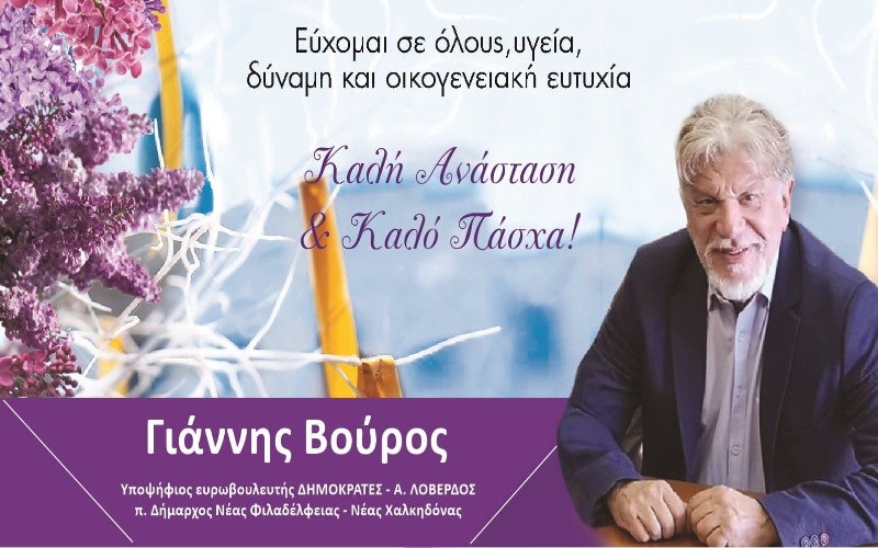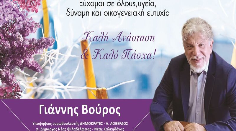 Τις Πασχάλιες Ευχές του έδωσε ο πρώην Δήμαρχος Νέας Φιλαδέλφειας – Νέα Χαλκηδόνας Γιάννης Βούρος για Υγεία, Σύνεση, Ψυχραιμία στα δύσκολα, Αλληλεγγύη και Ειρήνη σε όλο τον Κόσμο!