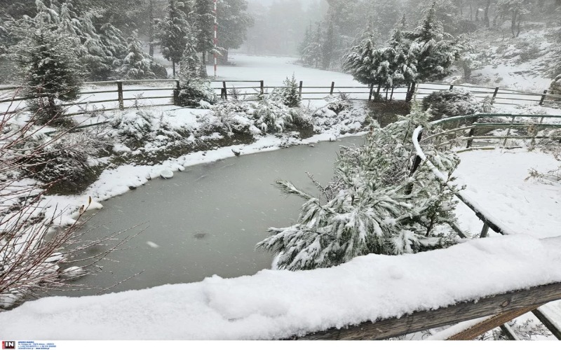 Στα λευκά έχουν ντυθεί ήδη τα βουνά της Αττικής, η Πάρνηθα, ο Υμηττός και η Πεντέλη.
