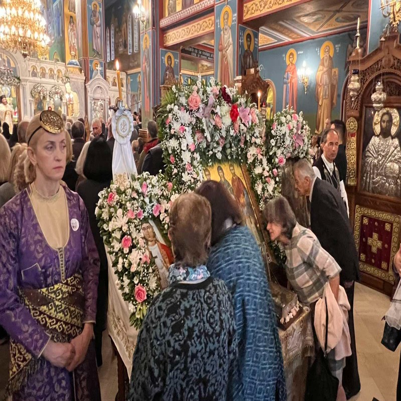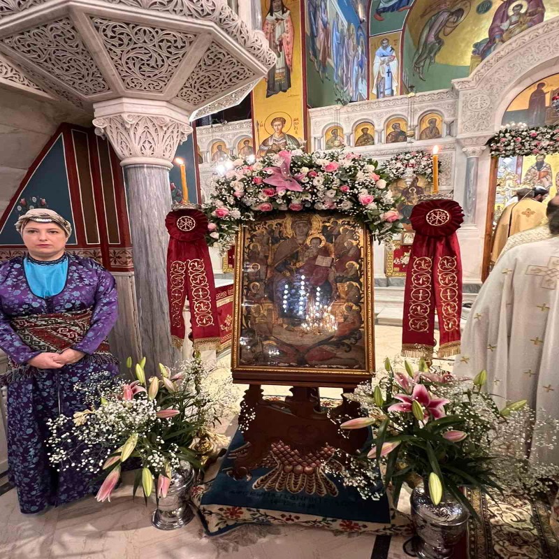 Η Θεία Λειτουργία τελέσθηκε ενώπιον της θαυματουργού Εικόνος της Παναγίας «Ρίζα του Ιεσσαί », την οποία υποδέχθηκε με ιδιαίτερη κατάνυξη ο πιστός λαός το απόγευμα της Παρασκευής και θα παραμείνει στον Ναό προς προσκύνηση έως και την επόμενη Κυριακή.