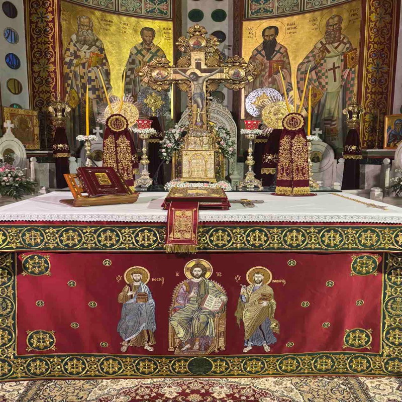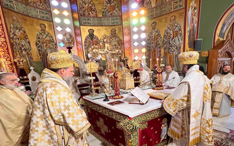 Την κυριώνυμο ημέρα τη εορτής, Σάββατο 1 Νοεμβρίου 2025, τελέσθηκε η Πανηγυρική Πολυαρχιερατική Θεία Λειτουργία, προεξάρχοντος του Σεβ. Μητροπολίτου Δρυϊνουπόλεως, Πωγωνιανής και Κονίτσης κ. Αλεξίου και συλλειτουργούντων του Θεοφ. Επισκόπου Χριστουπόλεως κ. Βαρνάβα και του οικείου Ποιμενάρχου, Σεβ. Μητροπολίτου Ν. Ιωνίας κ. Γαβριήλ και κληρικών της Ιεράς Μητροπόλεως, ενώ συμπροσευχόμενος εντός του Ιερού Βήματος παρέστη ο Σεβ. Μητροπολίτης Ανέων κ. Μακάριος.