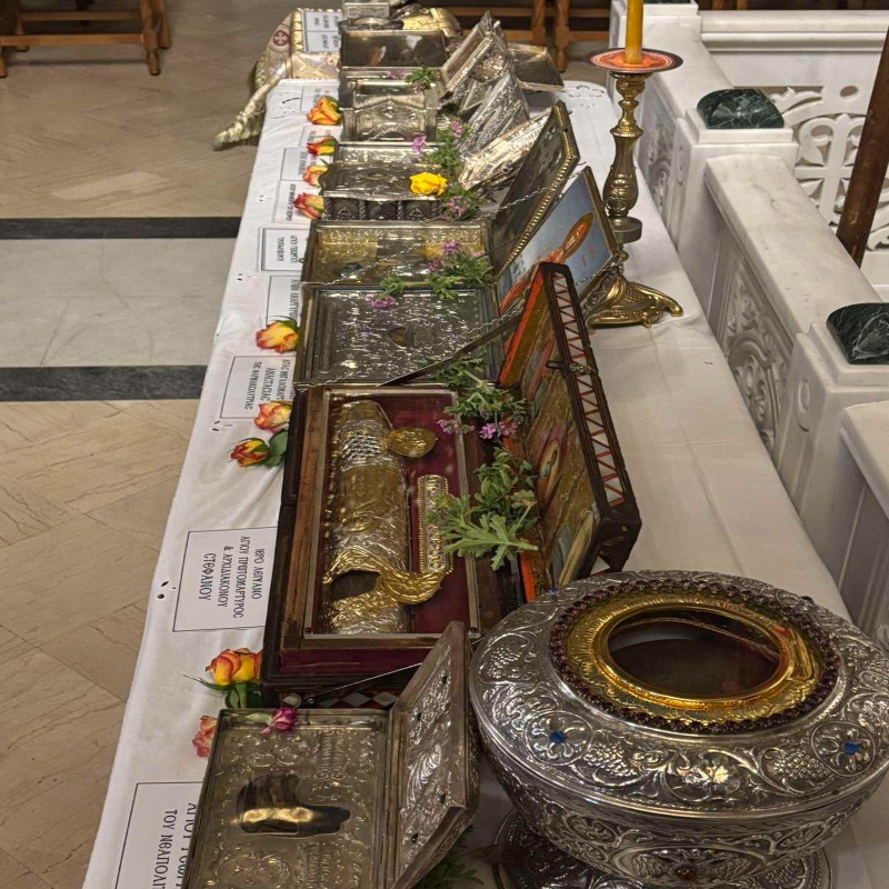 Τα ιερά λείψανα θα εκτίθενται σε προσκύνηση έως την επόμενη Κυριακή το απόγευμα. Καθημερινά θα τελείται: