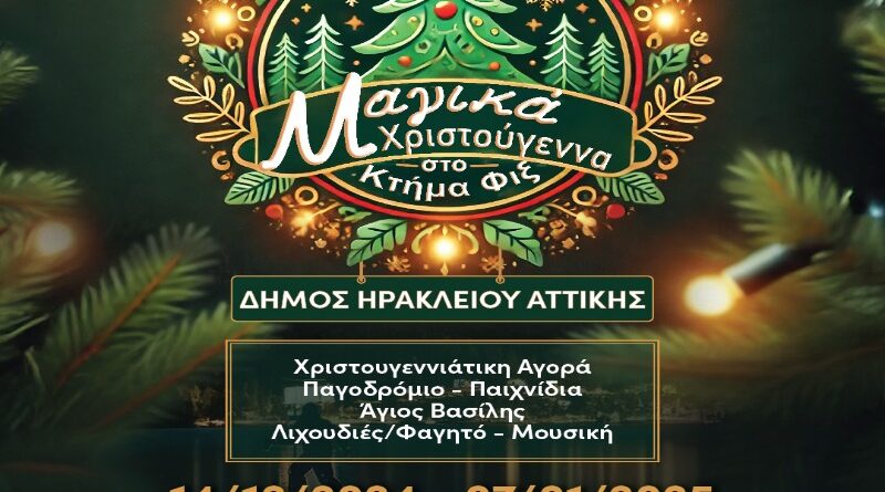 Ένα μαγικό, Χριστουγεννιάτικο Χωριό ανοίγει τις πόρτες του στο Κτήμα Φιξ, το μεγαλύτερο πάρκο του Δήμου Ηρακλείου Αττικής. Από τις 14 Δεκεμβρίου έως τις 7 Ιανουαρίου της νέας χρονιάς, μικροί και μεγάλοι επισκέπτες θα μπορούν να κάνουν τις γιορτινές τους βόλτες μέσα στο πάρκο με δωρεάν είσοδο για όλους.