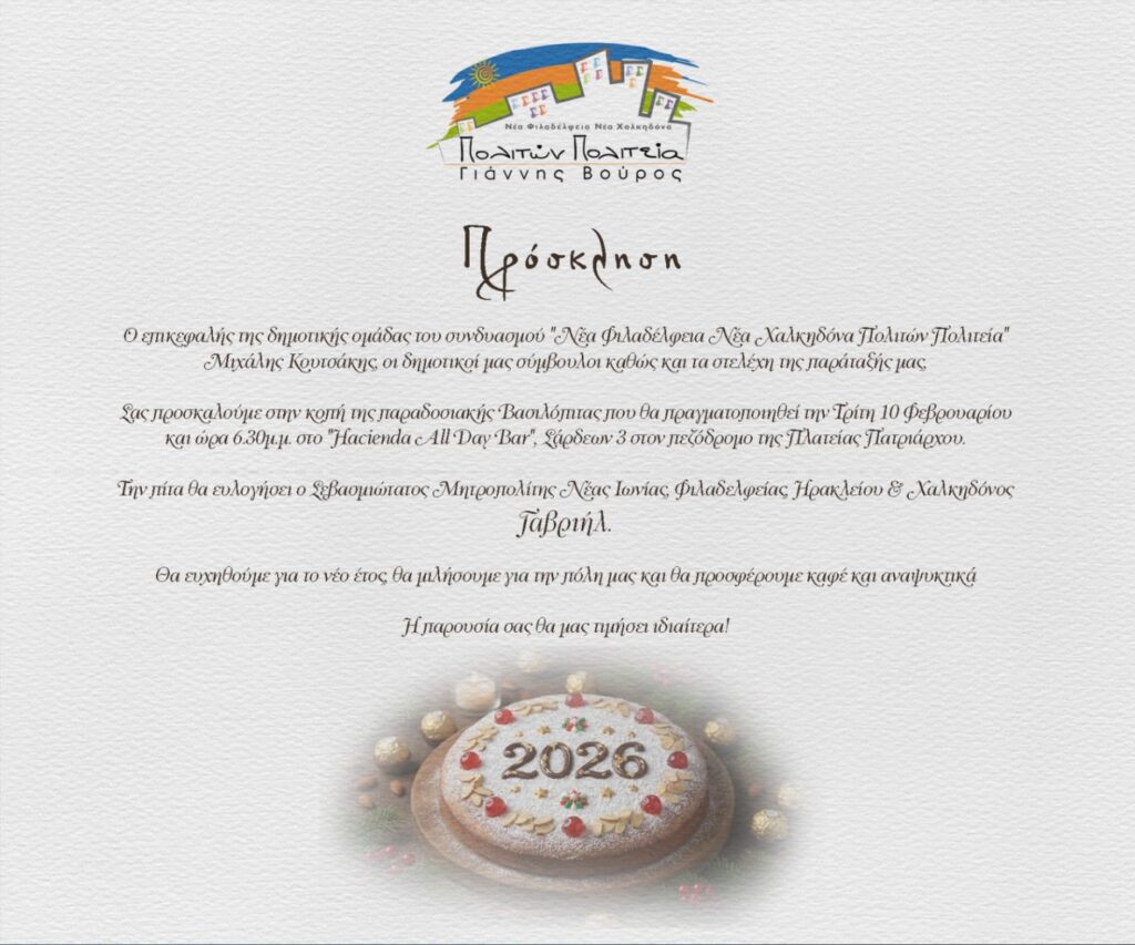 “ΝΦ-ΝΧ Πολιτών Πολιτεία”: Πρόσκληση Κοπή πίτας 2026