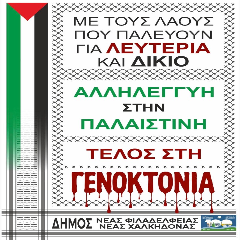Ο Δήμος Νέας Φιλαδέλφειας – Νέας Χαλκηδόνας στηρίζει την Παλαιστίνη