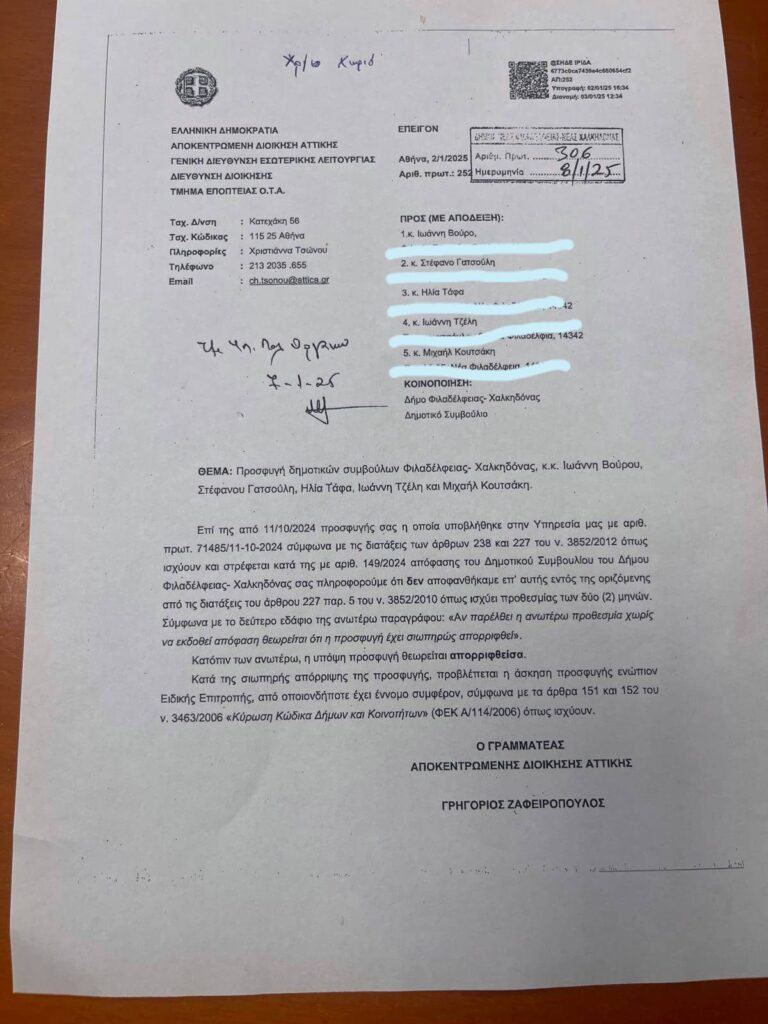 Η – κατά τη γνώμη μας λανθασμένη – πρακτική της Αποκεντρωμένης Διοίκησης Αττικής είναι να μην εξετάζει εντός διμήνου τις νόμιμες προσφυγές που έχουν έννομο συμφέρον να καταθέσουν οι εκλεγμένοι δημοτικοί σύμβουλοι στα πλαίσια των θεσμικών τους καθηκόντων. Ό,τι δεν εξετάζεται εντός διμήνου θεωρείται βάσει νομοθεσίας απορριφθέν. Αυτό συνέβη και με την περίπτωση της προσφυγής μας. Το ότι δεν αποφάνθηκε εντός διμήνου η Αποκεντρωμένη Διοίκηση Αττικής δε σημαίνει σε καμία περίπτωση ότι η απόφαση της δημοτικής αρχής Τομπούλογλου ήταν νόμιμη, όπως ισχυρίζεται στην ανακοίνωσή της. Φυσικά οι διοικούντες δεν το αναφέρουν αυτό στην ανάρτησή τους.