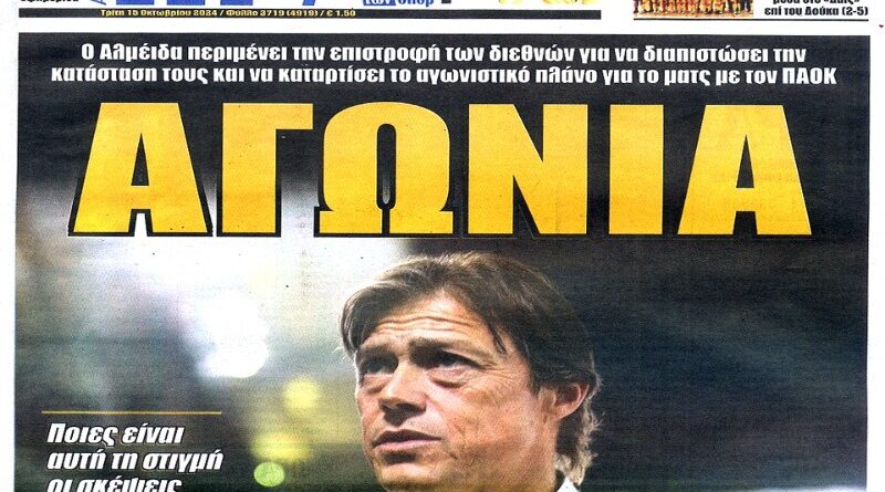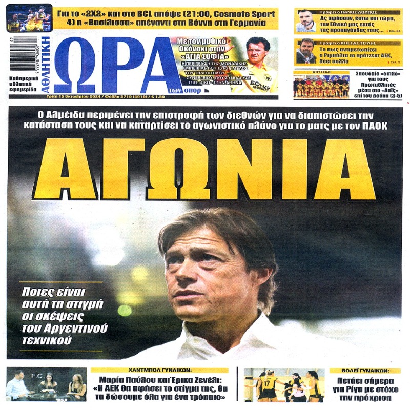 Πρωτοσέλιδα εφημερίδων 15/10/2024. Διαβάστε το Σημερινό Πρωτοσέλιδο της Αθλητικής ΩΡΑΣ των σπορ, οπαδικής εφημερίδας της ΑΕΚ και όλα τα Πρωτοσέλιδα εφημερίδων