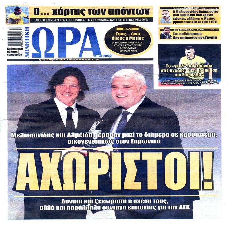 Πρωτοσέλιδα εφημερίδων 19/3/2024. Διαβάστε το Σημερινό Πρωτοσέλιδο της Αθλητικής ΩΡΑΣ των σπορ, οπαδικής εφημερίδας της ΑΕΚ και όλα τα Πρωτοσέλιδα εφημερίδων