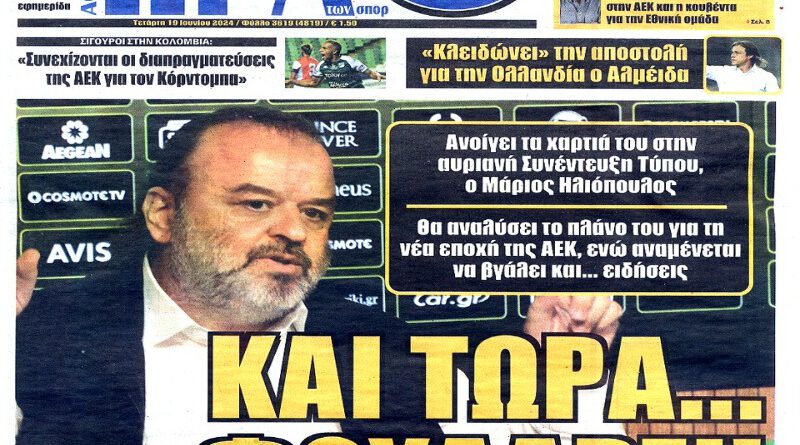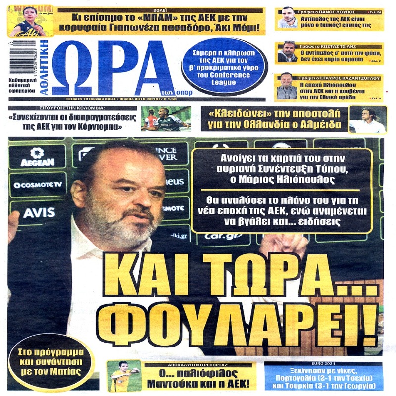 Πρωτοσέλιδα εφημερίδων 19/6/2024. Διαβάστε το Σημερινό Πρωτοσέλιδο της Αθλητικής ΩΡΑΣ των σπορ, οπαδικής εφημερίδας της ΑΕΚ και όλα τα Πρωτοσέλιδα εφημερίδων