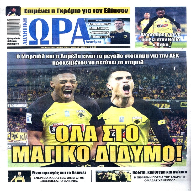 Πρωτοσέλιδα εφημερίδων 30/12/2024. Διαβάστε το Σημερινό Πρωτοσέλιδο της Αθλητικής ΩΡΑΣ των σπορ, οπαδικής εφημερίδας της ΑΕΚ και όλα τα Πρωτοσέλιδα των εφημερίδων
