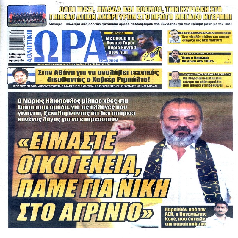Πρωτοσέλιδα εφημερίδων 4/10/2024. Διαβάστε το Σημερινό Πρωτοσέλιδο της Αθλητικής ΩΡΑΣ των σπορ, οπαδικής εφημερίδας της ΑΕΚ και όλα τα Πρωτοσέλιδα εφημερίδων