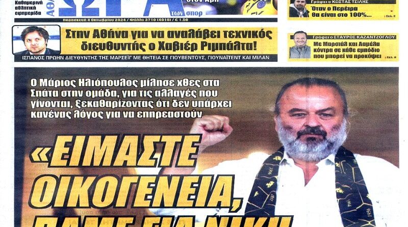 Πρωτοσέλιδα εφημερίδων 4/10/2024. Διαβάστε το Σημερινό Πρωτοσέλιδο της Αθλητικής ΩΡΑΣ των σπορ, οπαδικής εφημερίδας της ΑΕΚ και όλα τα Πρωτοσέλιδα εφημερίδων