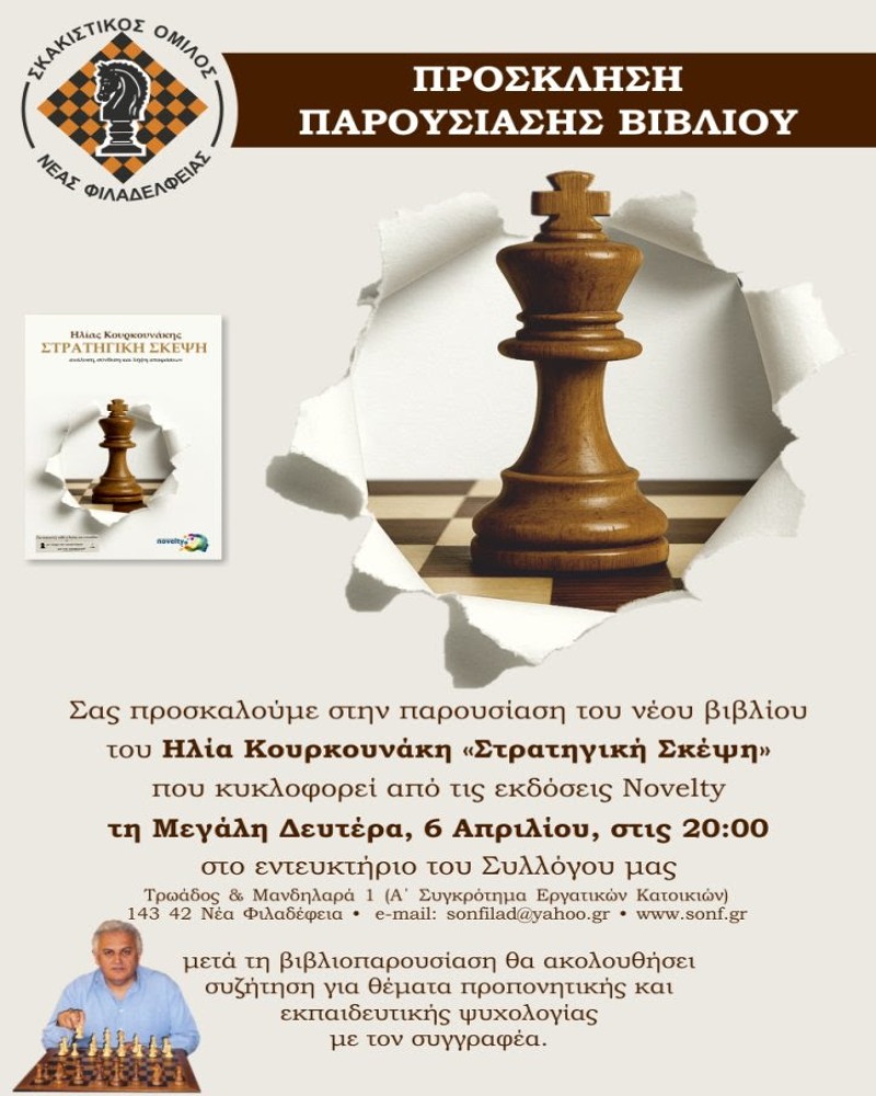 ΣΟΝΦ: Δευτέρα 6/4 8μμ: Βιβλίοπαρουσίαση και συζήτηση για θέματα προπονητικής και εκπαιδευτικής ψυχολογίας