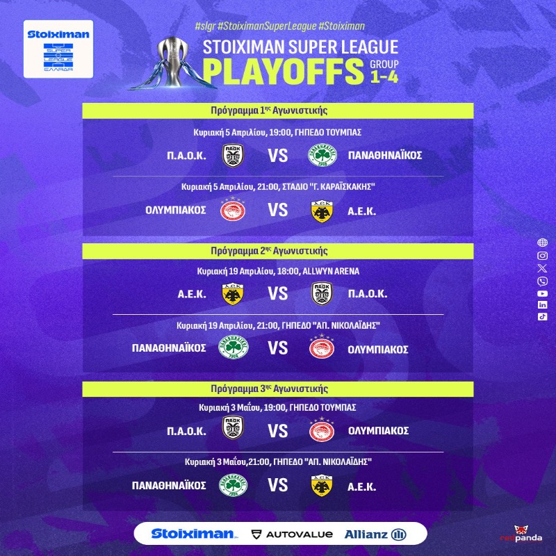 Stoiximan Super League Playoffs 2026: Το πλήρες πρόγραμμα για τον τίτλο – Όλες οι αγωνιστικές και τα ντέρμπι